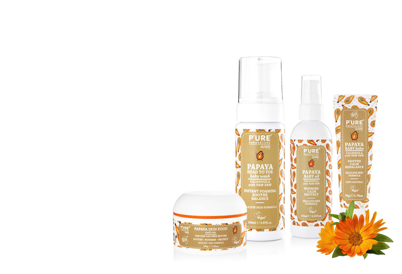 PURE Papaya Baby range offers a complete skincare regime from Papaya Head to Toe Baby Wash to Papaya Baby Moisturising Lotion, Baby Balm & Baby Oil.